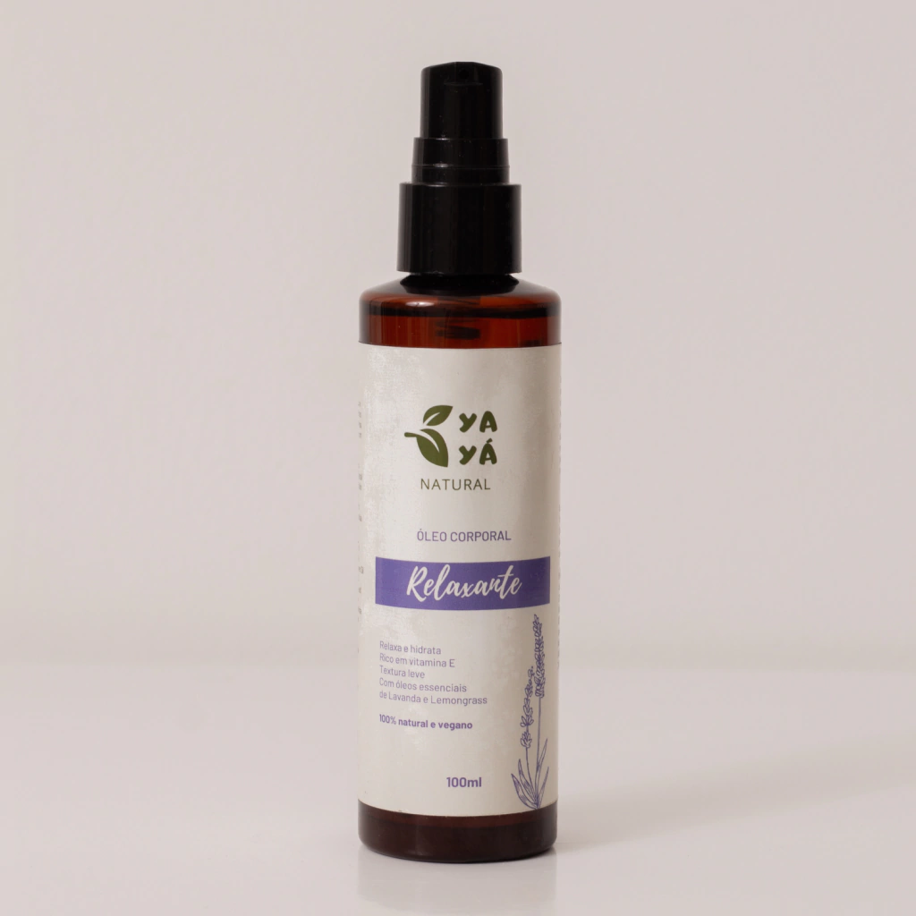 O óleo Relaxante Yaya Natural reúne um mix exclusivo de óleos vegetais nutritivos — girassol, maracujá, calêndula, copaíba e coco — cuidadosamente selecionados para hidratar, suavizar e proteger a pele sem pesar. Essa base leve e rica é combinada com os óleos essenciais de lavanda e capim-limão, que proporcionam relaxamento físico e mental, tornando o cuidado diário um momento de pausa e presença.